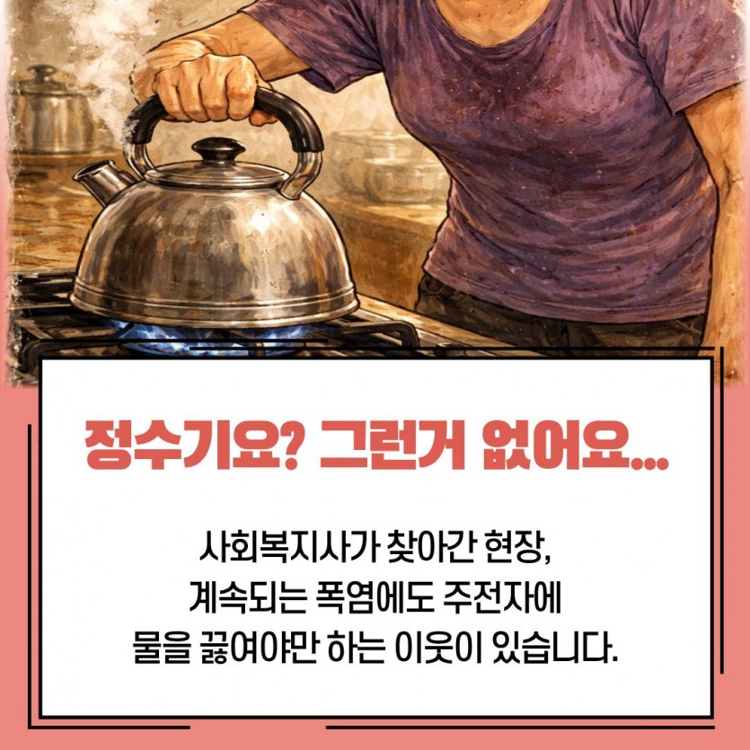 폭염장기화, 生水가 절실히 필요합니다. 본문 이렇게 진행됩니다. 펀딩기간 2026-03-30 ~ 2026-06-30 펀딩금액 1,200,000원 주요 사용 항목 온열질환 취약계층 대상 300세대 전달 0원 0% 펀딩 시작전입니다. 목록