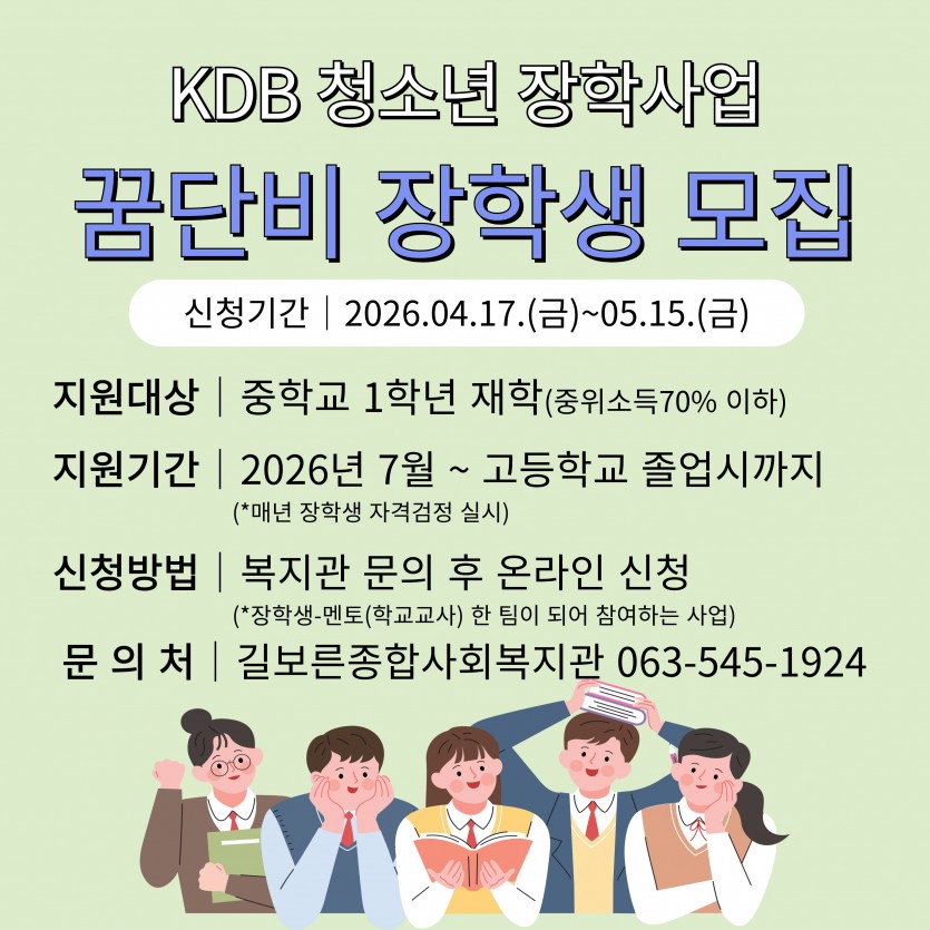 "2026년 KDB 청소년 장학사업 꿈단비 장학생 모집"