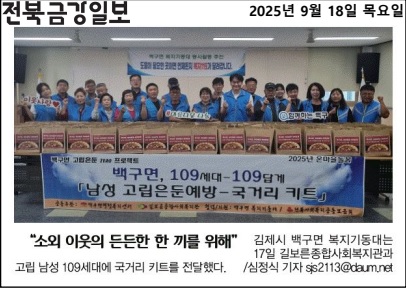 백구면-길보른종합사회복지관, "소외 이웃의 든든한 한 끼를 위해" <전북금강일보, 25.09.18>… 페이지 정보 작성자 관리자 댓글 0건 조회 1,518회 작성일 25-09-22 18:02 본문 백구면-길보른종합사회복지관, "소외 이웃의 든든한 한 끼를 위해" <전북금강일보, 25.09.18> 목록 이전글백구면-복지기동대-길보른종합사회복지관, 109세대 나눔사랑 추진 <국제뉴스, 25.09.18> 25.09.22 다음글백구면-길보른종합사회복지관, 행복과일도시락 민관협력사업 추진 <전북제일신문, 25.08.13> 25.08.25