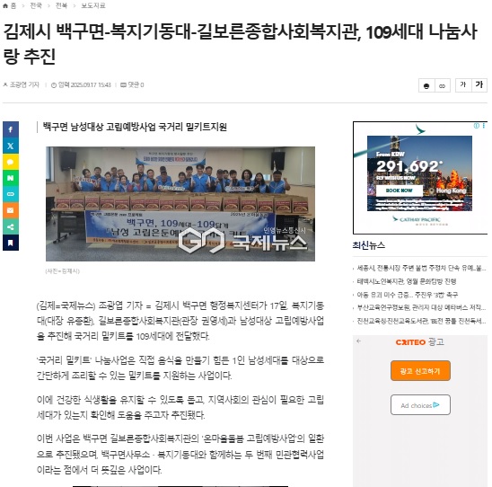 백구면-복지기동대-길보른종합사회복지관, 109세대 나눔사랑 추진 <국제뉴스, 25.09.18> 페이지 정보 작성자 관리자 댓글 0건 조회 1,490회 작성일 25-09-22 18:04 본문 백구면-복지기동대-길보른종합사회복지관, 109세대 나눔사랑 추진 <국제뉴스, 25.09.18> 목록 다음글백구면-길보른종합사회복지관, "소외 이웃의 든든한 한 끼를 위해" <전북금강일보, 25.09.18> 25.09.22