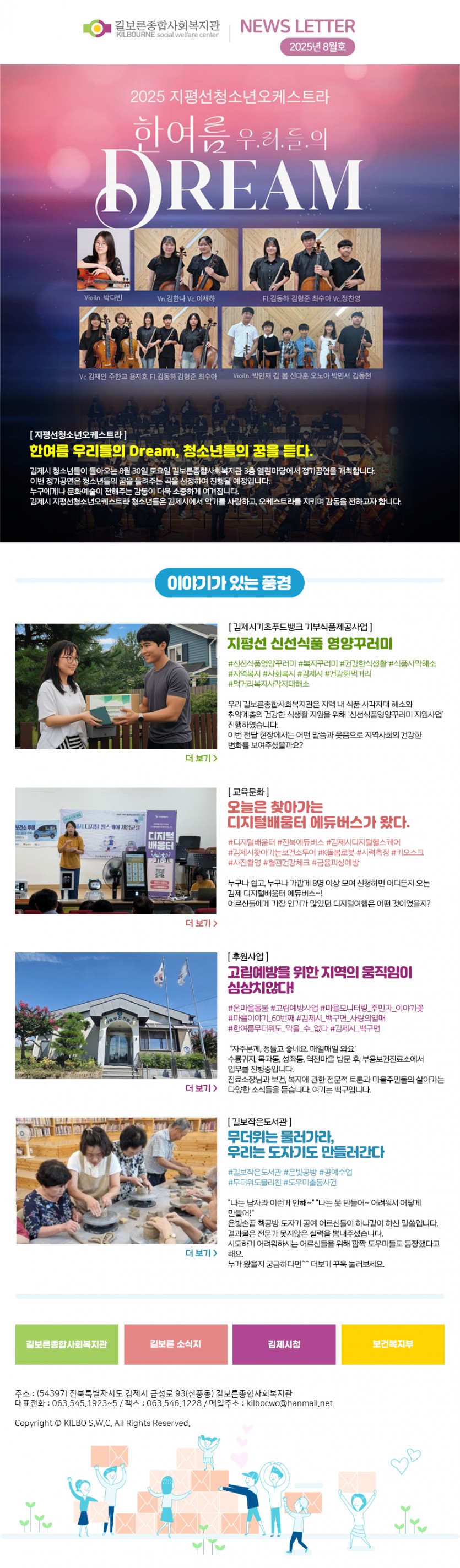 2025년 08월호 페이지 정보 작성자 관리자 댓글 0건 조회 730회 작성일 26-01-02 09:22 본문 . 관련링크 http://www.kilbo.or.kr/mail/mail_2508.html 621회 연결 목록 이전글2025년 09월호 26.01.02 다음글2025년 07월호 25.08.14