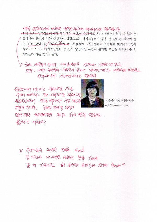 엘리베이터도 공공장소 (이은솔 기자) 페이지 정보 작성자 이은솔 댓글 0건 조회 14,527회 작성일 16-03-11 16:43 본문 엘리베이터도 공공장소 (이은솔 기자) 수정 삭제 목록 이전글3월 최우수기사 - 김영채 기자 16.03.14 다음글버려진 장난감, 반려동물 (지수빈 기자) 16.03.11