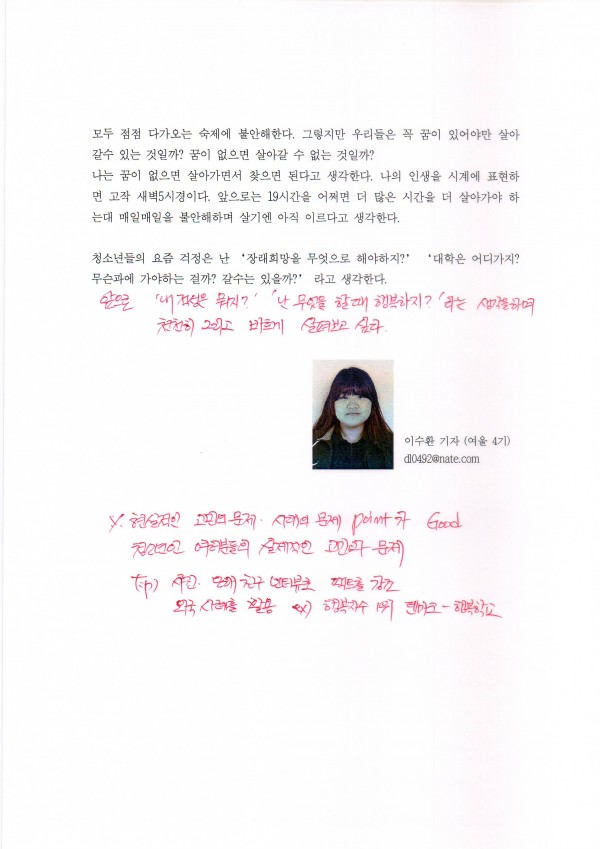 강요하는 사회, 싫어요 (이수환 기자) 페이지 정보 작성자 이수환 댓글 0건 조회 13,817회 작성일 16-03-11 16:37 본문 강요하는 사회, 싫어요 (이수환 기자) 수정 삭제 목록 이전글이어폰 사용 증가, 젊은층의 '소음성 난청' 증가 (김한슬 기자) 16.03.11 다음글등굣길, 위태로운 아이들 (허예진 기자) 16.03.11