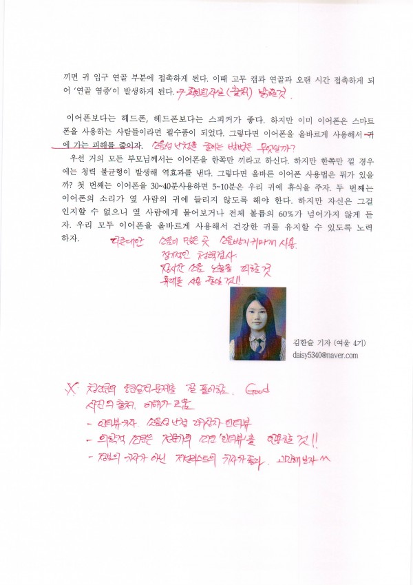 이어폰 사용 증가, 젊은층의 '소음성 난청' 증가 (김한슬 기자) 페이지 정보 작성자 김한슬 댓글 0건 조회 13,887회 작성일 16-03-11 16:38 본문 이어폰 사용 증가, 젊은층의 '소음성 난청' 증가 (김한슬 기자) 수정 삭제 목록 이전글갈 곳을 잃은 아픈 학생들 (김영채 기자) 16.03.11 다음글강요하는 사회, 싫어요 (이수환 기자) 16.03.11