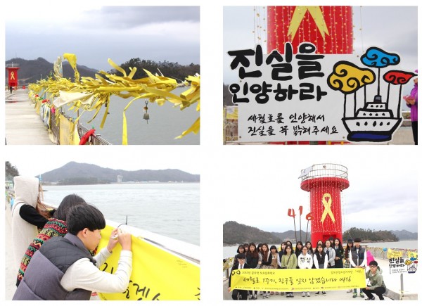 그 곳에 발을 내 딛는 순간, 벚꽃의 꽃내음도 4월의 푸르름도 이 곳 팽목항에는 찾아 볼 수 없었다. 바닷가 차가운 바람, 울부짓는 듯한 파도소리가 1년전 그날을 떠올르게하여 나와 친구들의 눈시울을 붉게 만들었다.