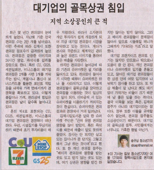 5월 취재기사 - 송규상기자 페이지 정보 작성자 문대광 댓글 0건 조회 9,804회 작성일 13-06-04 13:33 본문 5월 취재기사가 '김제시민의신문'에 기고 되었습니다. 목록 이전글김선미 기자-7월 취재기사 기고 13.07.03 다음글길보청소년기자단 '여울' 13.05.13