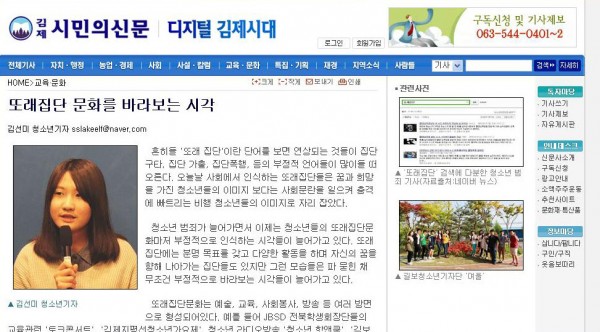 김선미 기자-7월 취재기사 기고 페이지 정보 작성자 문대광 댓글 0건 조회 9,939회 작성일 13-07-03 15:48 본문 또래집단 문화를 바라보는 시각 목록 이전글길보청소년기자단 '여울' 보수교육 진행 13.09.09 다음글5월 취재기사 - 송규상기자 13.06.04
