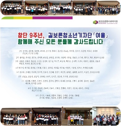길보른청소년기자단 '여울' 이 어느덧 창단 9주년을 맞이하였습니다. 2012년 시범사업을 시작으로 2013년 15명의 지역청소년들과 기자단을 창단, 오늘날까지 전통을 이어가고 있습니다.