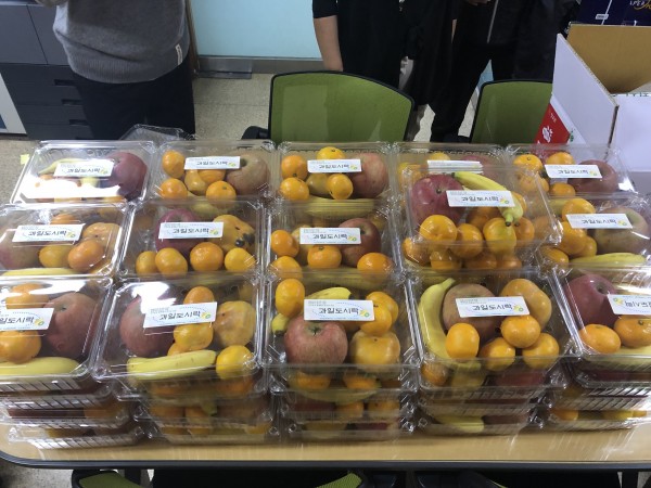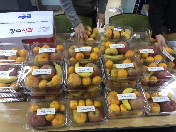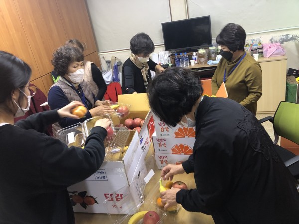 2021. 11월 금구면 영양듬뿍! 과일도시락 활동^^ 페이지 정보 작성자 장우진 댓글 0건 조회 16,910회 작성일 21-11-10 09:57 본문 추위가 찾아온 11월 금구면 행정복지센터에과일도시락을 만들고자 주민봉사자분들이 모이셨습니다.샛노란 바나나와 귤, 새빨간 사과,밝은 주황색 단감 등차곡차곡 담으며 하나하나 완성되어가는과일도시락!^^더운여름도 추운겨울도 가리지않고 주민분들을위한 용기있는 실천활동은 멈추지 않는 듯 합니다. 목록 이전글2021. 나눔 꽃이 피었습니다. 가래떡 데이-나눔 꾸러미 지원 21.11.17 다음글2021. 민관협력 의제실천사업-3 '봉사와 사랑이 넘치는 연탄나눔' 21.11.02