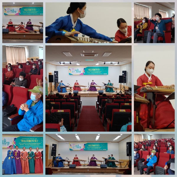 2021. 신나는 예술여행, 주민들 품으로~ 페이지 정보 작성자 kilbolibrary 댓글 0건 조회 16,556회 작성일 21-10-19 12:09 본문 10월 14일 신나는예술가들이 길보른종합사회보지관을 찾았습니다방역수칙을 준수하면서 어르신들과함께 흥나는 무대를 선보였습니다어르신들도공연자들도 오랜만의 대면공연이었기 때문에서로 마스크를 쓰고 있었지만어깨를 들썩이며팔을 덩실거리며발로 박자를 맞추며 신나는 시간을 보냈습니다with 코로나로 향하는 문을 두드리는 시간이 아니었나 생각합니다서울에서 새벽같이출발한 공연팀곽수은과 가야금앙상블 라온 G감사드립니다그리고 방역수칙을 잘지켜주시고 질서도잘지켜주신 어르신들께도 감사인사드립니다 목록 이전글2021. 황산면 의곡새마을에 찾아온 '2021 찾아가는 전국민 희망콘서트' 21.10.27 다음글2021. 마을협동화사업 동남권마을복지관에서 마을복지사분을 모십니다.! 21.10.18