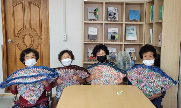 "회관 문은 닫아서 답답해 죽것어~"