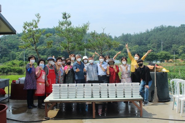 "금산면에 어려우신 이웃, 어르신들이 드실거니 더 맛있게 정성을 깃들여 장만했어요. 부디 맛있게 드세요"