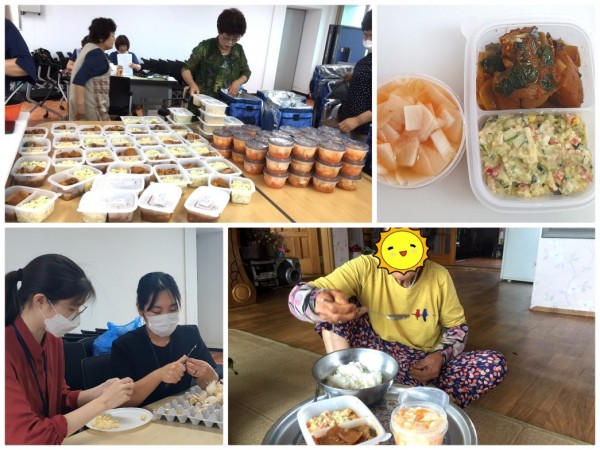 보온가방을 활용한 위생안전활동, 국을 대신하여 물김치 만들기, 치아 및 노인성질환을 고려한 식단 구성 등 알차고 뜻깊은 시간의 연속입니다. 매주 화요일, 복지사각지대 문제점을 해결하고자 봉남면과 길보른종합사회복지관, 성암노인복지센터는 월4회, 180명의 노인층을 대상으로 밑반찬을 지원하고 있습니다.