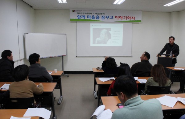 설연휴를 앞두고 있어 '주민들의 참여가 가능할까'하는 염려로 시작된 지역주민교육강좌. 더군다나 날씨도 추워지고 눈이 올거같은 날이었습니다. 걱정은 배가되어 갔고 교육시간이 다 되어 가는데 오신분은 2명, 텅비어 있는 교육장을 보면서 날씨만큼 제 마음도 추워져만 갔습니다.