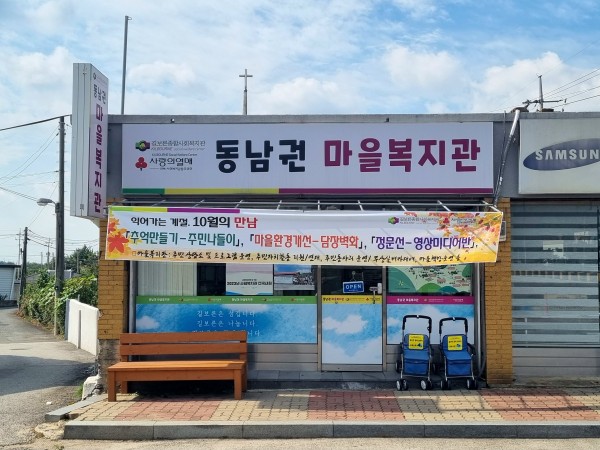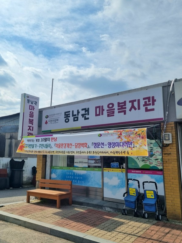 2023. 【동남권 마을복지관】 10월 가을과 어우러지는 새로운 이야기, 현수막 게첨 페이지 정보 작성자 관리자 댓글 0건 조회 15,881회 작성일 23-10-04 14:49 본문 #동남권_마을복지관 #10월_이야기#전라북도사회복지공동모금회매월 그 달의 이야기를 전하는동남권 마을복지관 메인 현수막.10월에도 새로운 이야기를 홍보하고자새로운 현수막을 올립니다.간혹 현수막을 보시고 문을 열어 궁금한 점을 물어보시기 까지 많은 관심을 보여주십니다.'추억만들기-주민나들이', '마을환경개선-담장벽화','정문선-영상미디어반' 등 함께 만드는동남권 마을복지관 이야기 입니다. 목록 이전글2023. 【동남권 마을복지관】 지역문제해소, 관심과 적극행정의 결실입니다 23.10.19 다음글[후원사업] 가족사랑요양병원 효도리사회사업단 추석맞이 간식 나눔 23.09.26