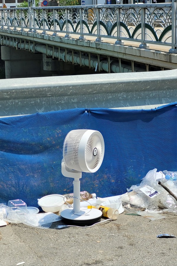저멀리 쓰레기 더미속 하얀 광채의 써큘레이터.