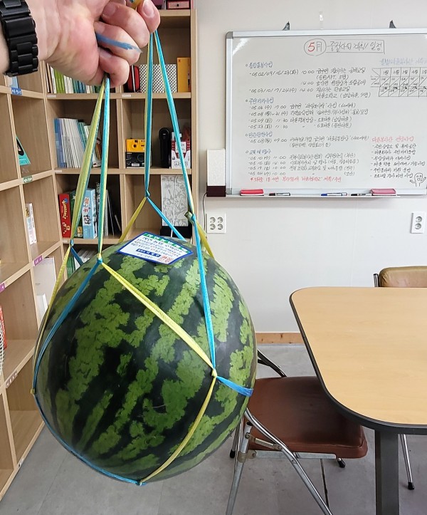 수박을 책상에 놓고 후딱~ 사라져 버리셨습니다.