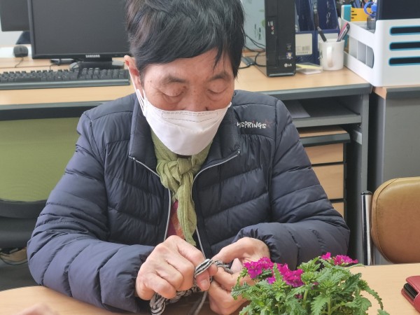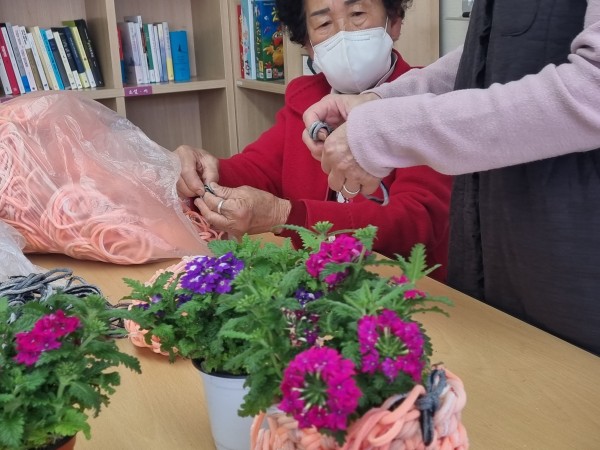 2022. 동남권 마을복지관 - 꽃화분 꾸미기 공예활동 페이지 정보 작성자 관리자 댓글 0건 조회 16,664회 작성일 22-03-29 15:51 본문 꽃이피는 봄이오고 마을복지관에는 조금 더 이쁜 꽃이 피어납니다. 알록달록 준비된 꽃들앞에 서면 어르신들은소녀보다 더 소녀같은 마음꽃이 피어나는가 봅니다.어떤 색이 좋을까, 어떤 꽃이 이쁠까고민끝에 고른 화분을 공예활동을 통해 꾸며봅니다.아름답게 피어난 꽃들보다 어르신의 입가에 피어난웃음꽃이 더 아름다운건 기분탓일까요?^^ 목록 이전글2022. 마을복지관 주민만남, 그리고 협력 간담회 22.03.30 다음글2022. 3월 금산면 마을공동밥상 22.03.29