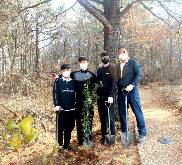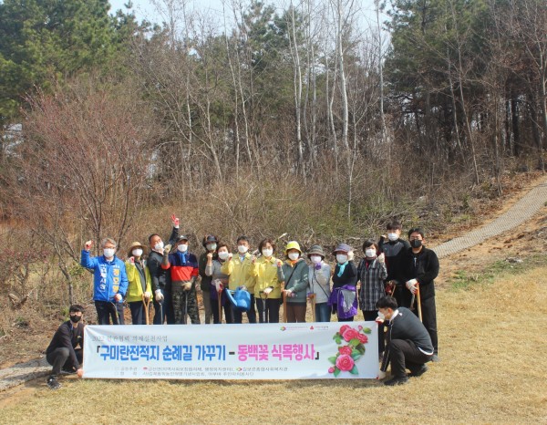 구미란전적지 순례길에 모여 동백꽃 나무를 심어