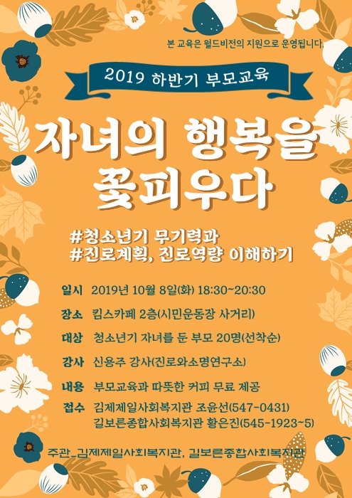 길보른종합사회복지관, 김제제일사회복지관에서 청소년기 자녀를 둔 부모님께 꼭 도움이 될만한