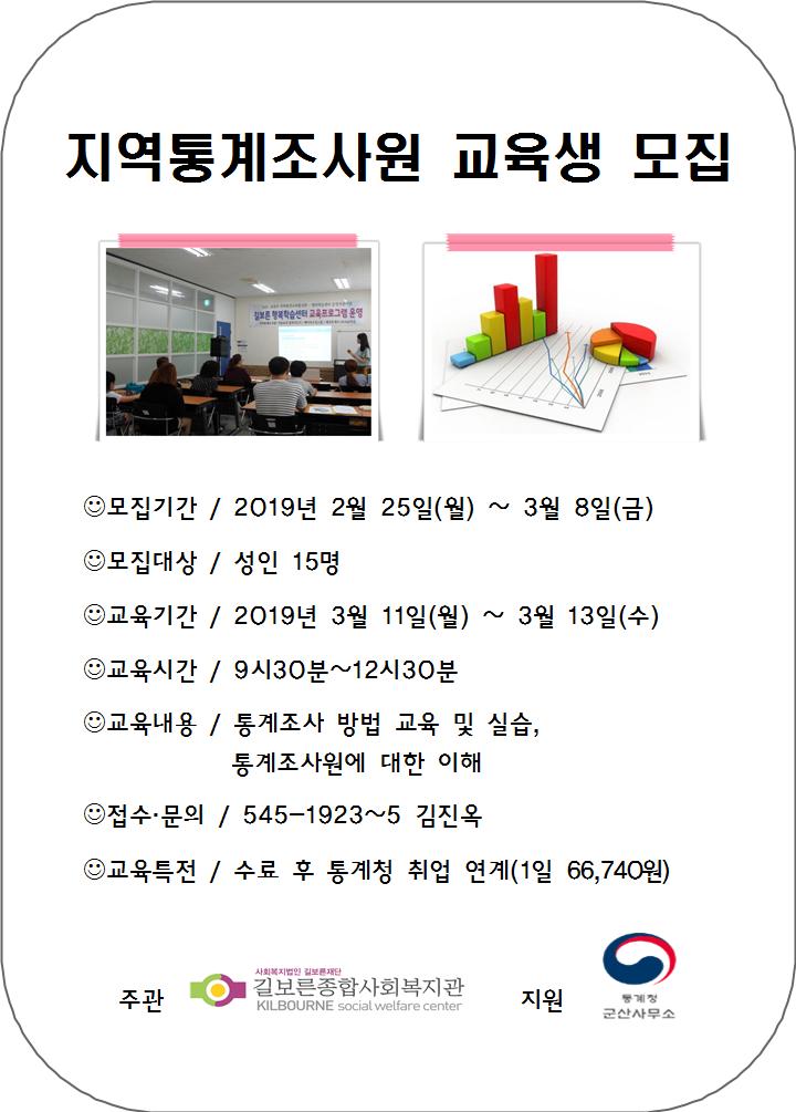 지역통계조사원 교육에 참여하실 분들을 모집합니다.