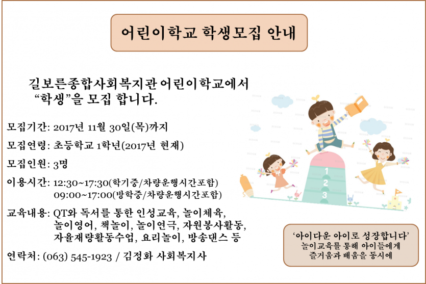 길보른어린이학교에서 학생을 모집합니다.