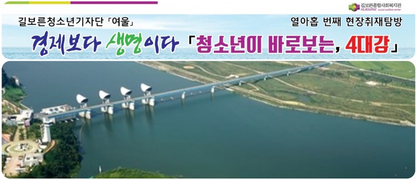 여울청소년기자단은 이번 현장취재의 장소로 충남 부여군 백제보와 익산과 서천을 잇는 웅포대교 모래톱을 살펴봄으로써 보개강 전, 후의 모습을 살펴보고 4대강사업을 객관적으로 취재해보고자 합니다.