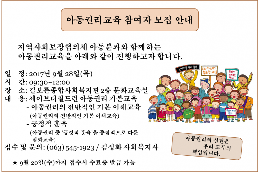 아동권리교육 참여자를 모집합니다.