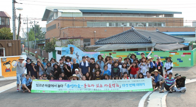 - 금성마을은 6.25 피난민들의 삶의 터전으로 자리잡아 지금은 저소득층, 독거노인 밀집지역으로 자리를 잡았습니다. 아이들의 웃음소리가 없는 마을, 차가운 시멘트 담벼락, 인적드문 마을의 이미지를 개선하고 주민이 주인이되는 마을공동체를 목표로 ‘마을벽화-2020 프로젝트’사업을 지난 2013년부터 매년 2회씩 추진하게 되었습니다.