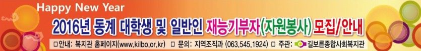 길보른종합사회복지관에서는 2016년 동계방학을 맞이하여 지역내 다양한 봉사활동을 통해 성장할 열정있는 대학생 및 일반인 재능기부자를 모집하고 있습니다.
