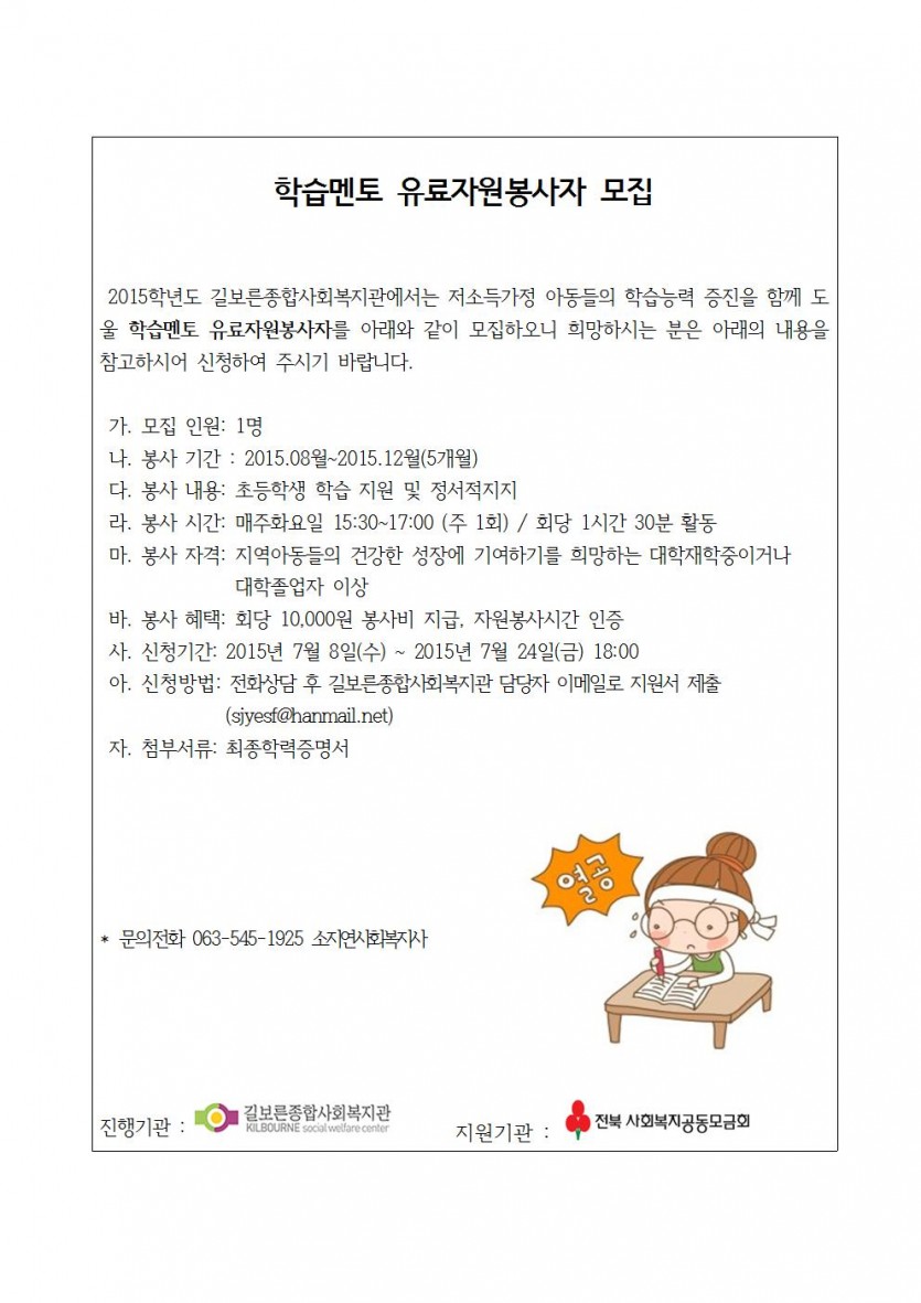 - 학습멘토링모집.hwp (0byte) 463회 다운로드 | DATE : 2015-07-08 16:02:05