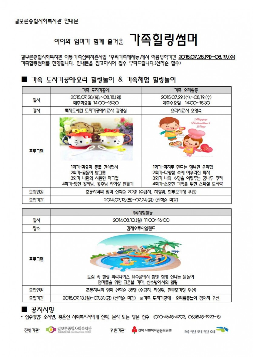 엄마와 아이를 위한 여름방학 프로그램 "가족힐링썸머" 참여자 모집
