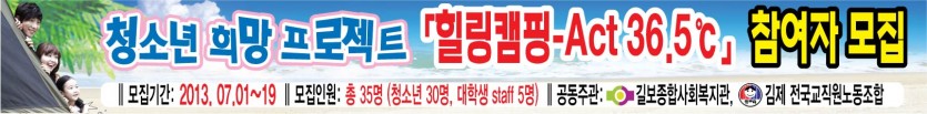2013년 하계 청소년 희망프로젝트 「힐링캠핑-Act 36.5℃」참여자 모집