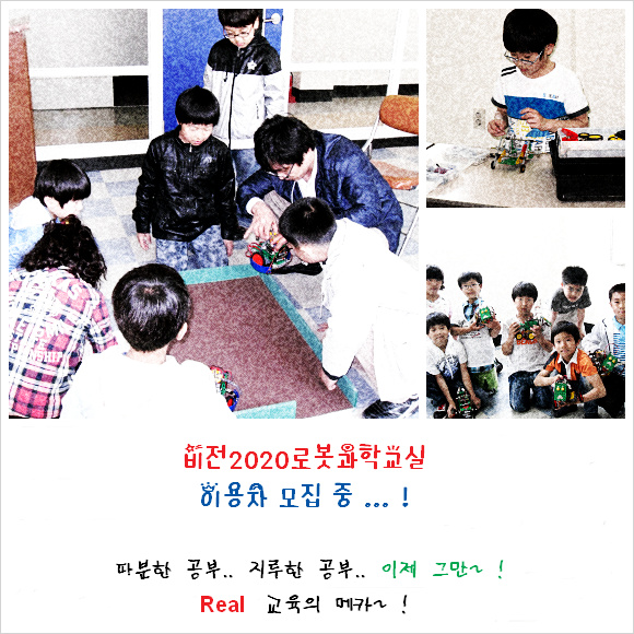 로봇과학교실 이용자 모집 페이지 정보 작성자 임옥순 댓글 0건 조회 30,334회 작성일 11-06-09 17:48 본문 접수 기간 : ~ 2011.07.13 대 상 : 초등학생 1~6학년 (선착순 접수) 수정 삭제 목록 이전글2011년 여름방학 학습멘토 자원봉사자 모집 11.06.29 다음글문화와 만나는 신나는 놀토 이용자 모집 11.06.09