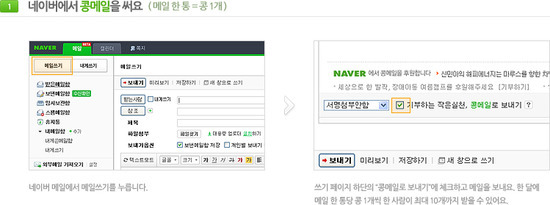 1) 네이버 콩 메일 쓰기 (메일을 쓸 때 꼭 콩메일에 체크하는 센스~)