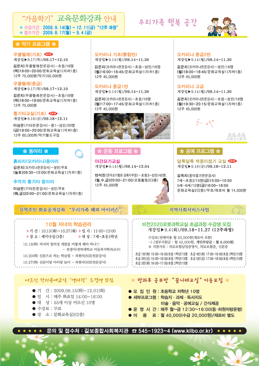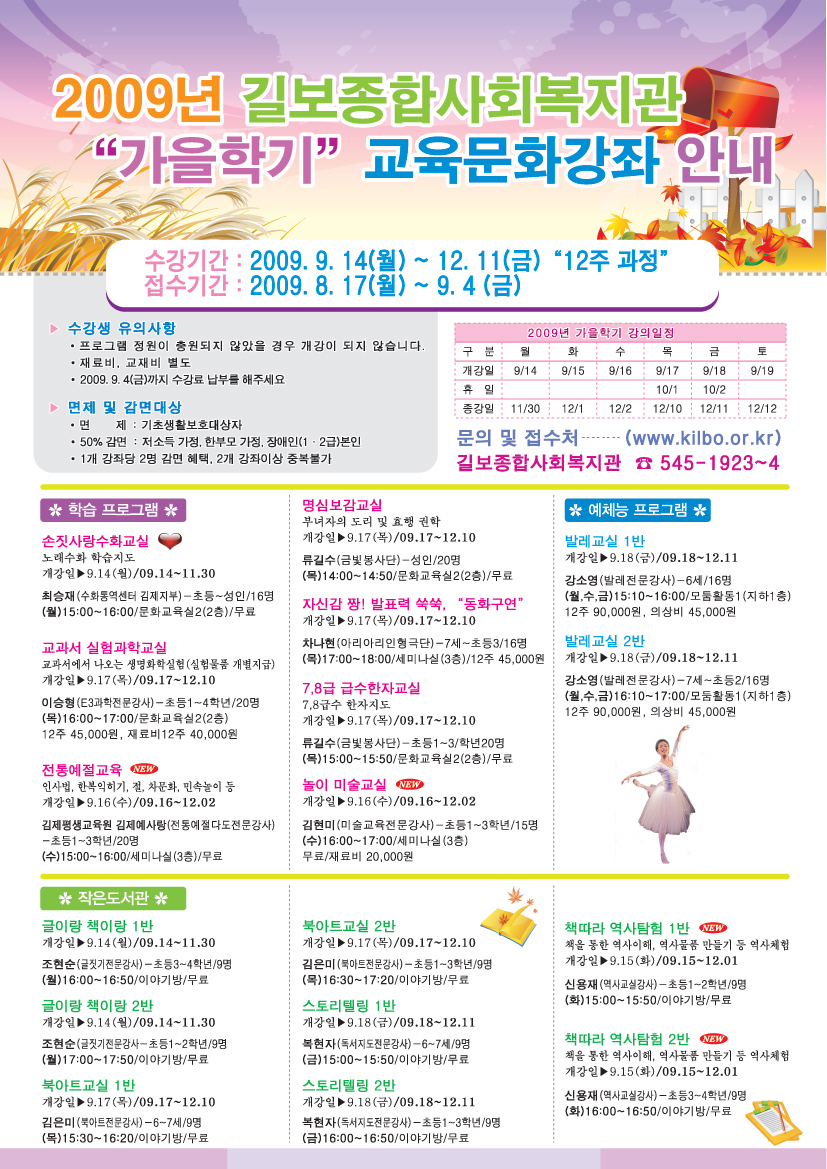 ■ 2009년 길보종합사회복지관 "가을학기" 교육문화강좌 수강생 모집 ■