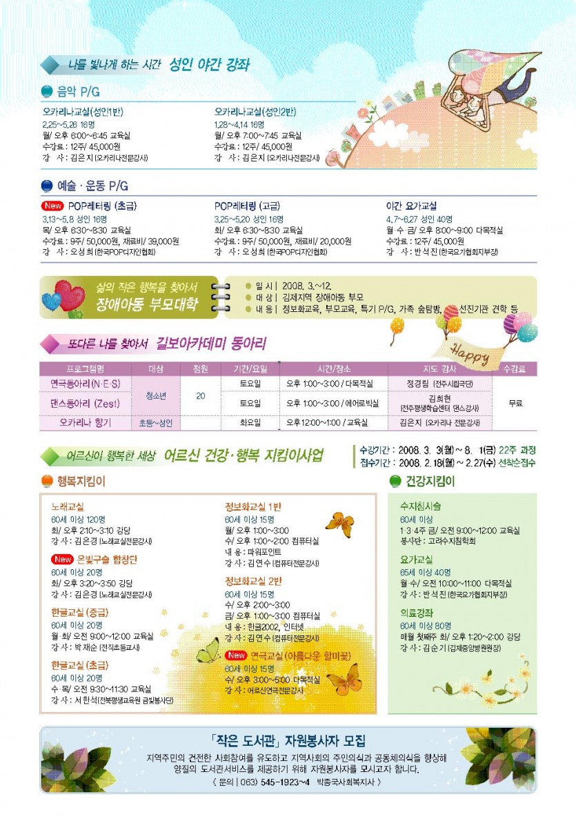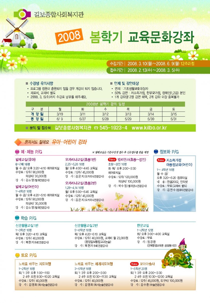 ■ 2008년 길보종합사회복지관 "봄학기" 교육문화강좌 수강생 모집 ■