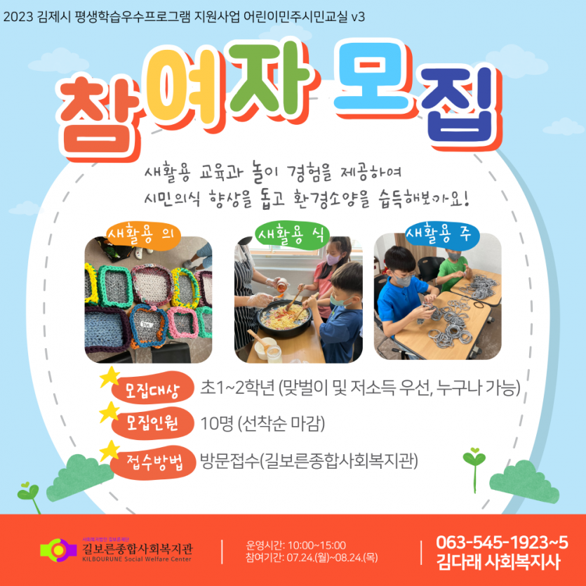 여름방학 공백 돌봄 및 새활용교육의 장이 열렸다!! 어린이민주시민교실V3 참여자 모집