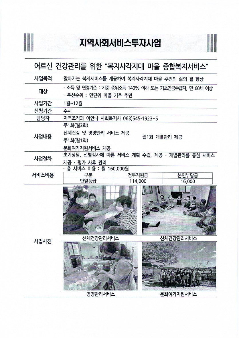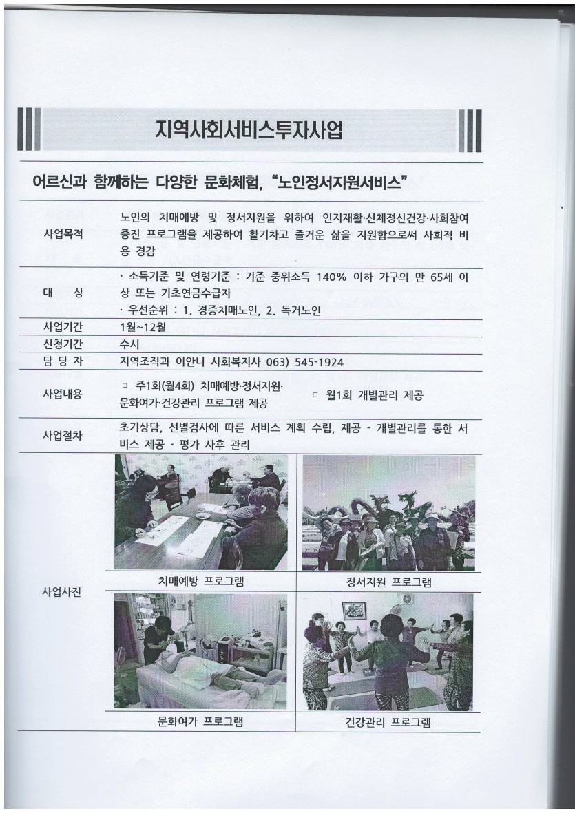 지역사회서비스투자사업 이용자 모집 페이지 정보 작성자 관리자 댓글 0건 조회 28,191회 작성일 19-01-02 14:31 본문 길보른종합사회복지관에서는 지역사회서비스투자사업 이용자를 모집합니다.모집기간: 상시모집인원: 00명연 락 처: 545-1923 목록 이전글지역사회서비스투자사업 이용자 모집 20.01.02 다음글길보른종합사회복지관 사회복지사 채용시험 최종합격자 명단 공고 21.06.15