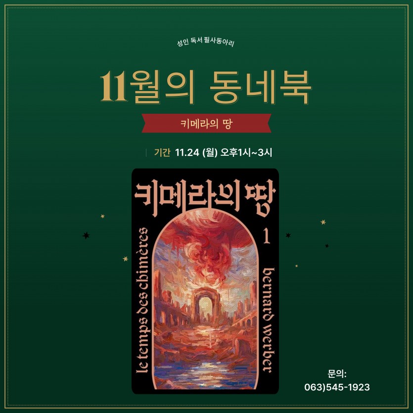 [길보작은도서관] 11월의 동네북 프로그램 안내 페이지 정보 작성자 gilbobooki 댓글 0건 조회 3,956회 작성일 25-10-30 16:07 본문 목록 이전글지평선청소년오케스트라 정기공연이 진행됩니다. 25.11.06 다음글[김제시지역사회보장협의체노인분과] 제4회 노인문학경연대회 "글쓰니까 청춘이다!" 25.10.29