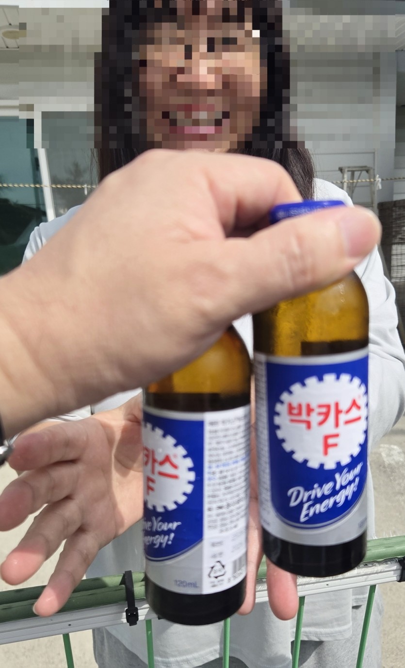 그리고 집에 들어가더니 가지고 나온 피로회복 음료수.