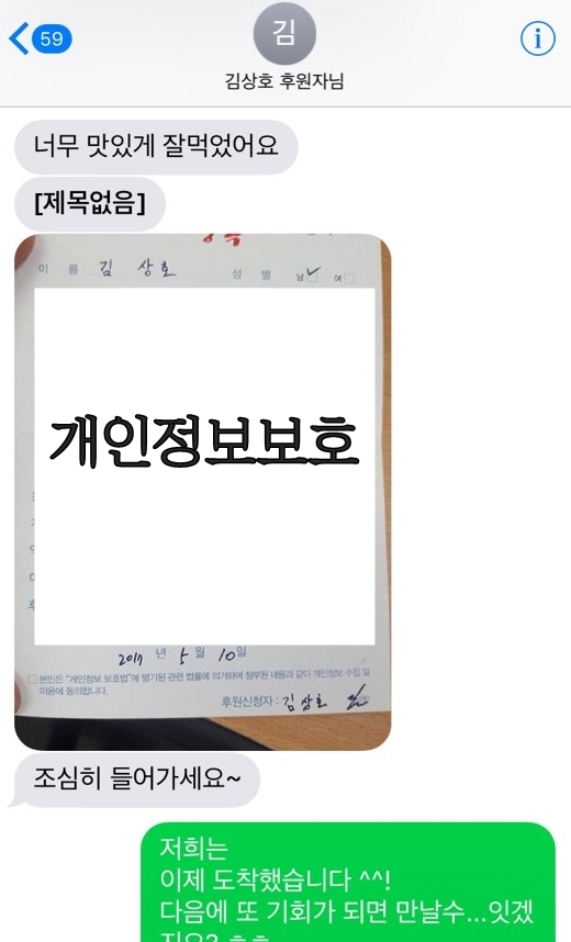 후원자님의 감사문자와 후원신청서가 전송되어 왔습니다.