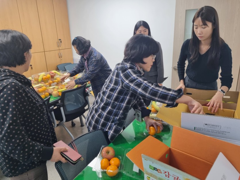 【지역복지사업】 금구면 영양지원(과일도시락) 11월 정기진행 페이지 정보 작성자 관리자 댓글 0건 조회 26,650회 작성일 23-11-16 10:32 본문 #금구면 #민관협력 #주민참여#영양지원 #과일도시락매월 초 진행되는 영양지원-과일도시락민관협력과 주민참여로 이루어집니다.가위로 과일을 소분하고 깨끗하게 포장하며행사, 이웃, 동료, 이슈 등 다양한지역사회 이야기가 오갑니다."어르신들 과일 참 좋아하셔요.받으면 그 자리에서 바로 드시는 분도 많고이 조그마한 양을 이웃하고 나눠드시는 분도 있어요."겨울이 시작되는 입동,이웃을 생각하는 주민분들의 따듯함이더 선명히 느껴지는 계절이 다가옵니다. 목록 이전글[국민연금행복아카데미] 국민연금나눔재단 전북본부로 떠나는 성과공유회 여행 23.11.20 다음글【동남권 마을복지관】 제6탄 고창편_11월 만추, '꽃보다 청춘' 가을나들이 23.11.08