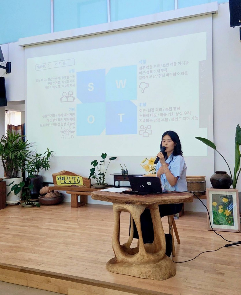 【25년 사회복지연합실습】연합실습 중간평가회 현장을 가다 페이지 정보 작성자 관리자 댓글 0건 조회 7,234회 작성일 25-07-21 13:44 본문 #김제사회복지연합실습_중간평가회#김제시사회복지협의회#김제노인종합복지관#길보른종합사회복지관 엊그제 개강했전 연합실습이 어느덧 반환점을 돌았다. 이른 폭염보다 힘들었던 것은 젊은 청춘들의 뜨거운 열기가 아니였을까(?) 낙오자없이 다들 잘 따라와 주어서 고맙다. 스스로 깨어나려는 여러 몸짓들을 바라본다. 선배로서 흐뭇하다. 마라톤을 하다보며 두 번의 고비가 찾아온다. 반환점을 돌고 나도 모르게 느껴지는 오버페이스의 고통, 마지막 5km를 남기고 찾아오는 극한의 데드포인트. 우리 후배님들이 잘 이겨낼 수 있도록 페이스메이커(실습지도자) 역할을 더 충실히 할 것이다. 다들 완주의 기쁨을 느끼게 해주고싶다. 목록 이전글【동남권 마을복지관】폭염, 온열질환 대응 농촌현장 더 가까이 25.07.21 다음글【동남권 마을복지관】군산종합사회복지관, 사회복지실습생 환영합니다^^ 25.07.21