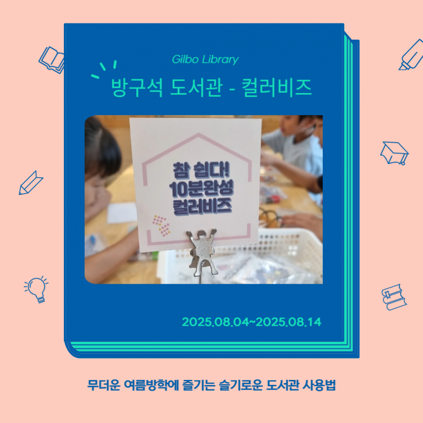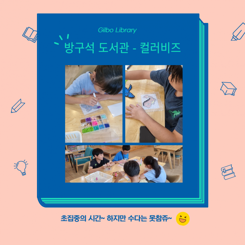 [길보작은도서관] 여름방학-도서관은 분주합니다 ^^ 페이지 정보 작성자 gilbobooki 댓글 0건 조회 6,425회 작성일 25-08-12 17:28 본문 여름방학 방구석 도서관 프로그램 진행중입니다. 요즘 우리 도서관 친구들이 빠져있는 것은 바로 비즈공예~꼼지락꼼지락 비즈 한 알 한 알 채워가는 재미에 빠져포켓몬스터 만들기 무섭게 주토피아도 하나 더~비즈공장은 오늘도 바쁘게 돌아갑니다.ㅎㅎㅎ수요일은 영화보는 날~팝콘과 함께하는 영화관람은 그야말로 꿀맛이겠죠? 이번주도 계속해서 방구석 도서관 진행합니다. 부모님과, 친구와, 동생과 함께 오셔서재미있는 도서관생활을 즐겨보세요! 목록 이전글[길보작은도서관] 은빛손끝 책공방 첫시간- 도자기공예 후기 25.08.12 다음글[지평선청소년오케스트라] 청소년오케스트라 학부모 간담회 진행중입니다~♫♪ 25.08.09