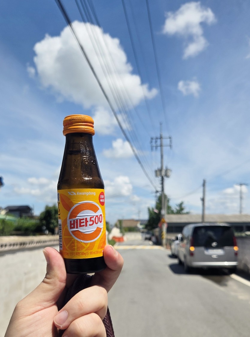 방에 급하게 들어가 나오더니 음료 한병을 전해줍니다.