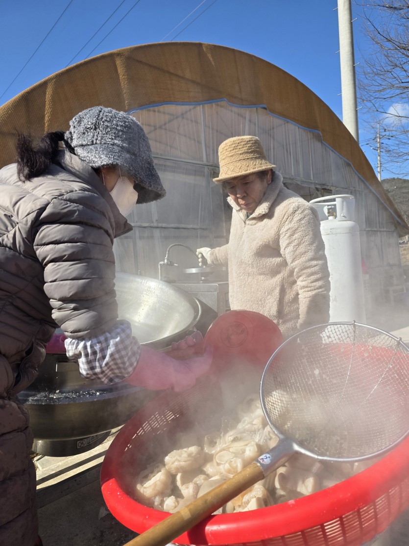"아이고 이거 밤새도록 보고있었다니까! 그래도 이번엔 남자들도 잘 도와주고 우리 회원님들도 번갈아가면서 잘 해줬어요. 맛이 없을수가 없지~"