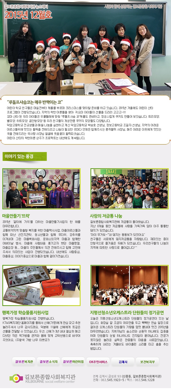 2015년 12월호 페이지 정보 작성자 관리자 댓글 0건 조회 4,004회 작성일 16-04-28 10:56 본문 . 관련링크 http://www.kilbo.or.kr/mail/mail_1512.html 3466회 연결 목록 이전글2016년 01월호 16.04.28 다음글2015년 11월호 16.04.28