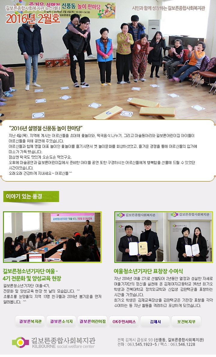 2016년 02월호 페이지 정보 작성자 관리자 댓글 0건 조회 4,045회 작성일 16-04-28 10:57 본문 . 관련링크 http://www.kilbo.or.kr/mail/mail_1602.html 3475회 연결 목록 이전글2016년 03월호 16.04.28 다음글2016년 01월호 16.04.28