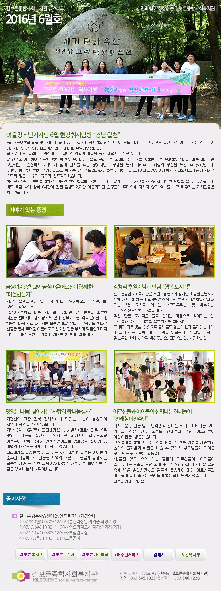 2016년 06월호 페이지 정보 작성자 관리자 댓글 0건 조회 4,035회 작성일 16-11-03 12:56 본문 . 관련링크 http://www.kilbo.or.kr/mail/mail_1606.html 4116회 연결 목록 이전글2016년 07월호 16.11.03 다음글2016년 05월호 16.06.08